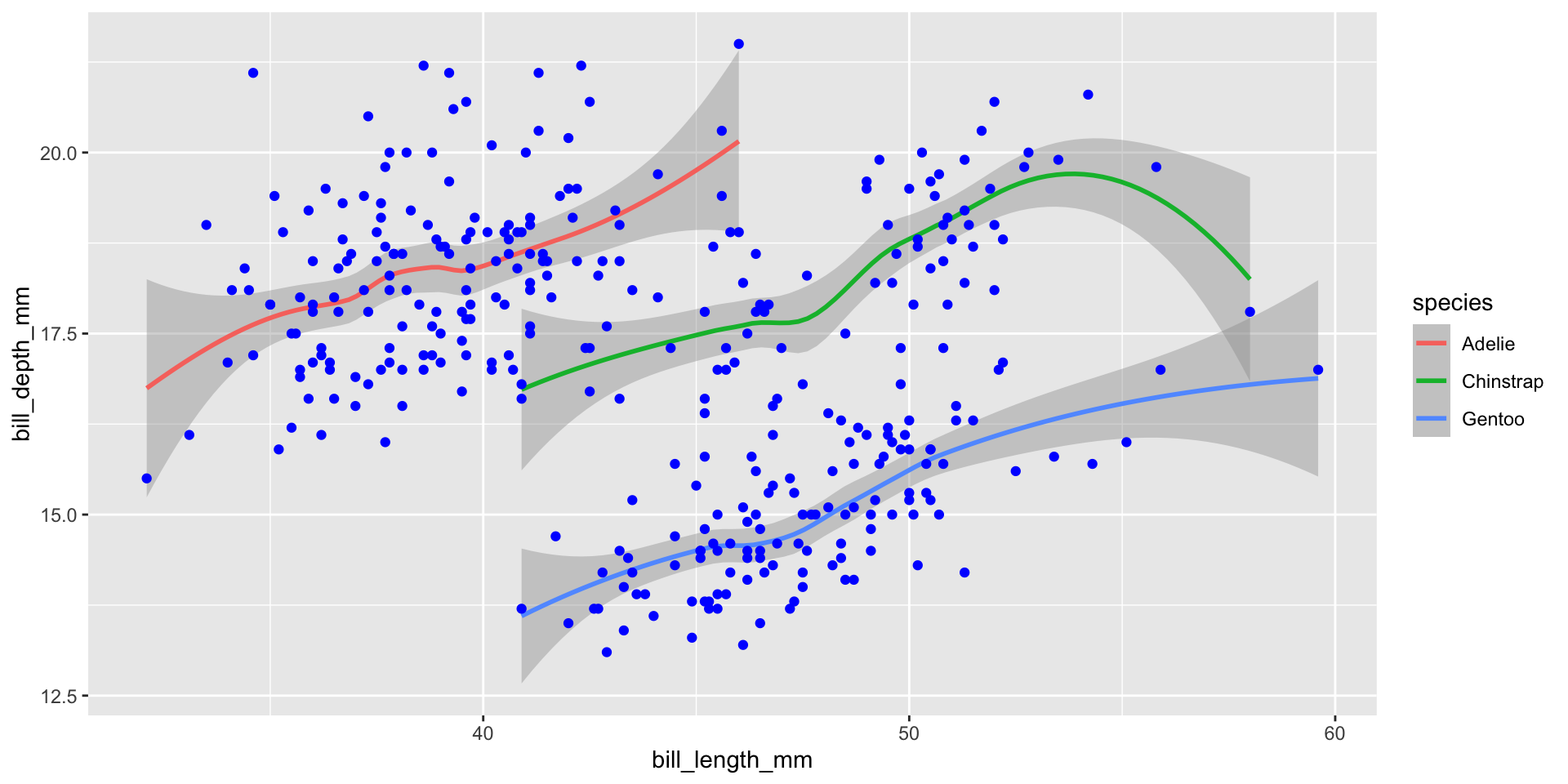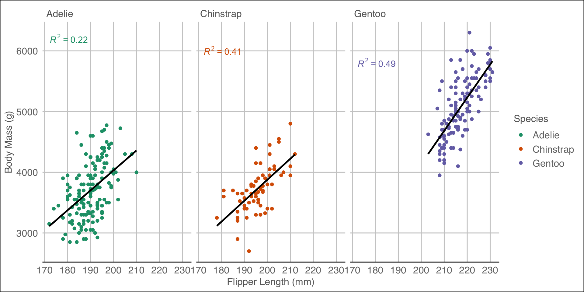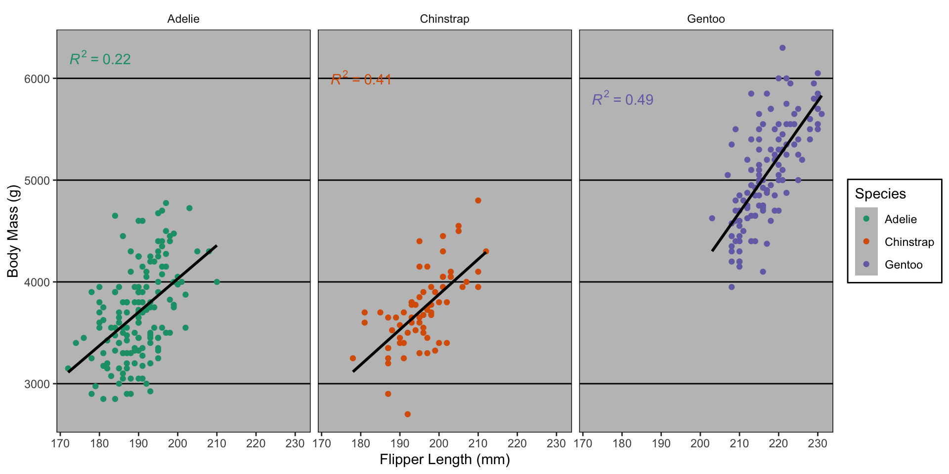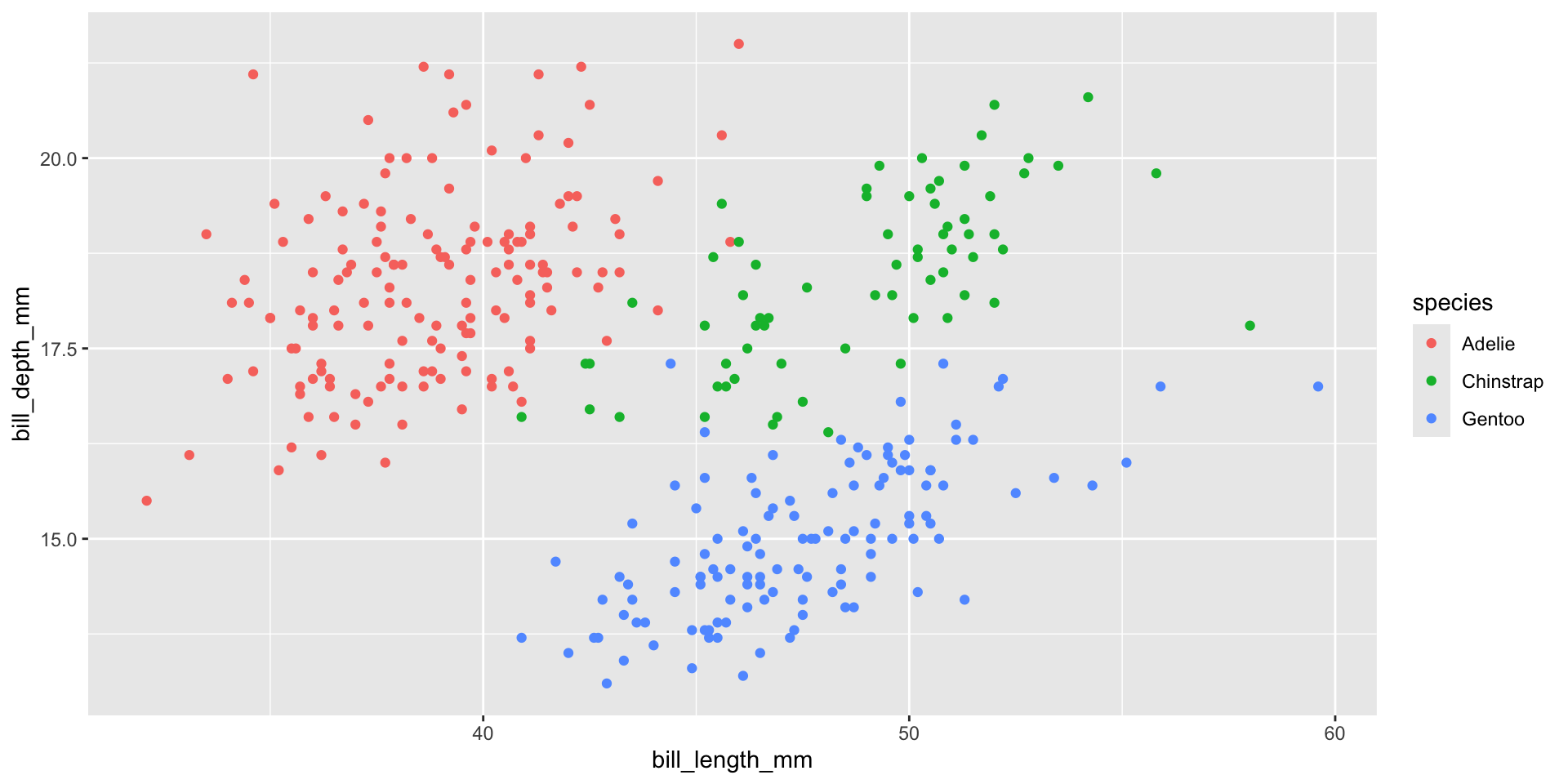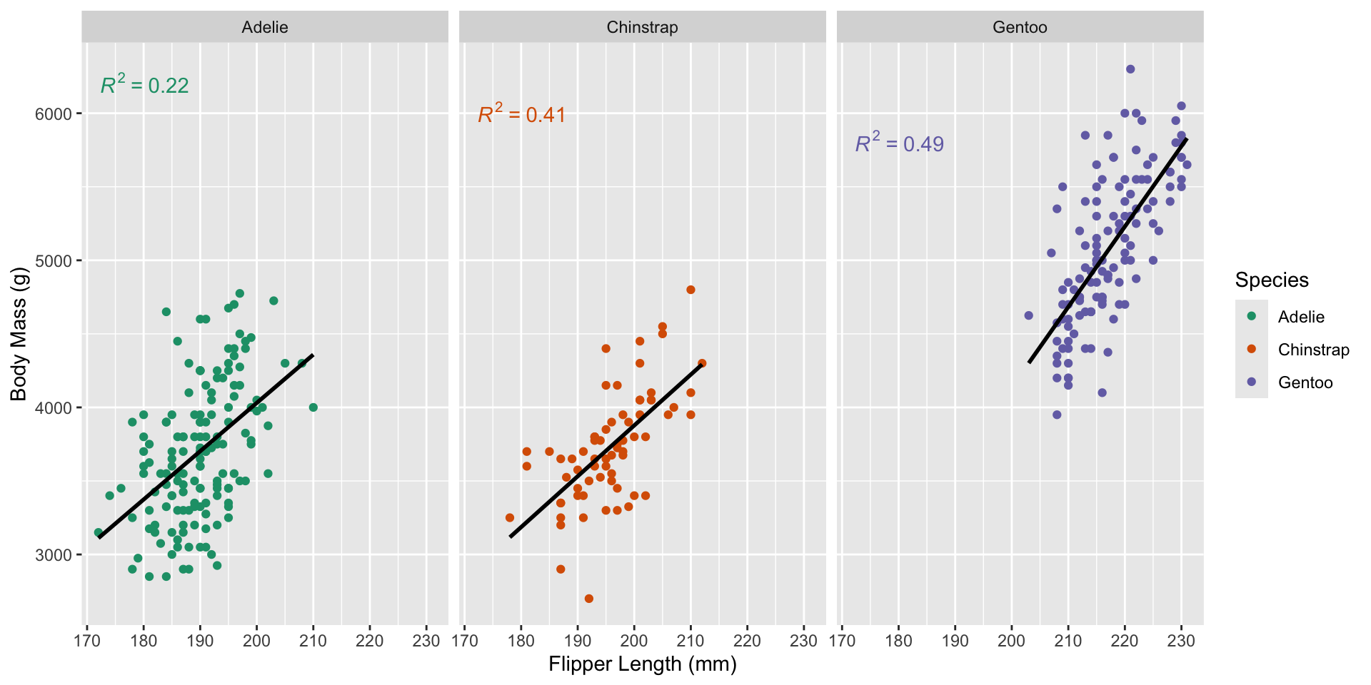 facet_wrap(~species)Default theme (ggplot2::theme_grey()):