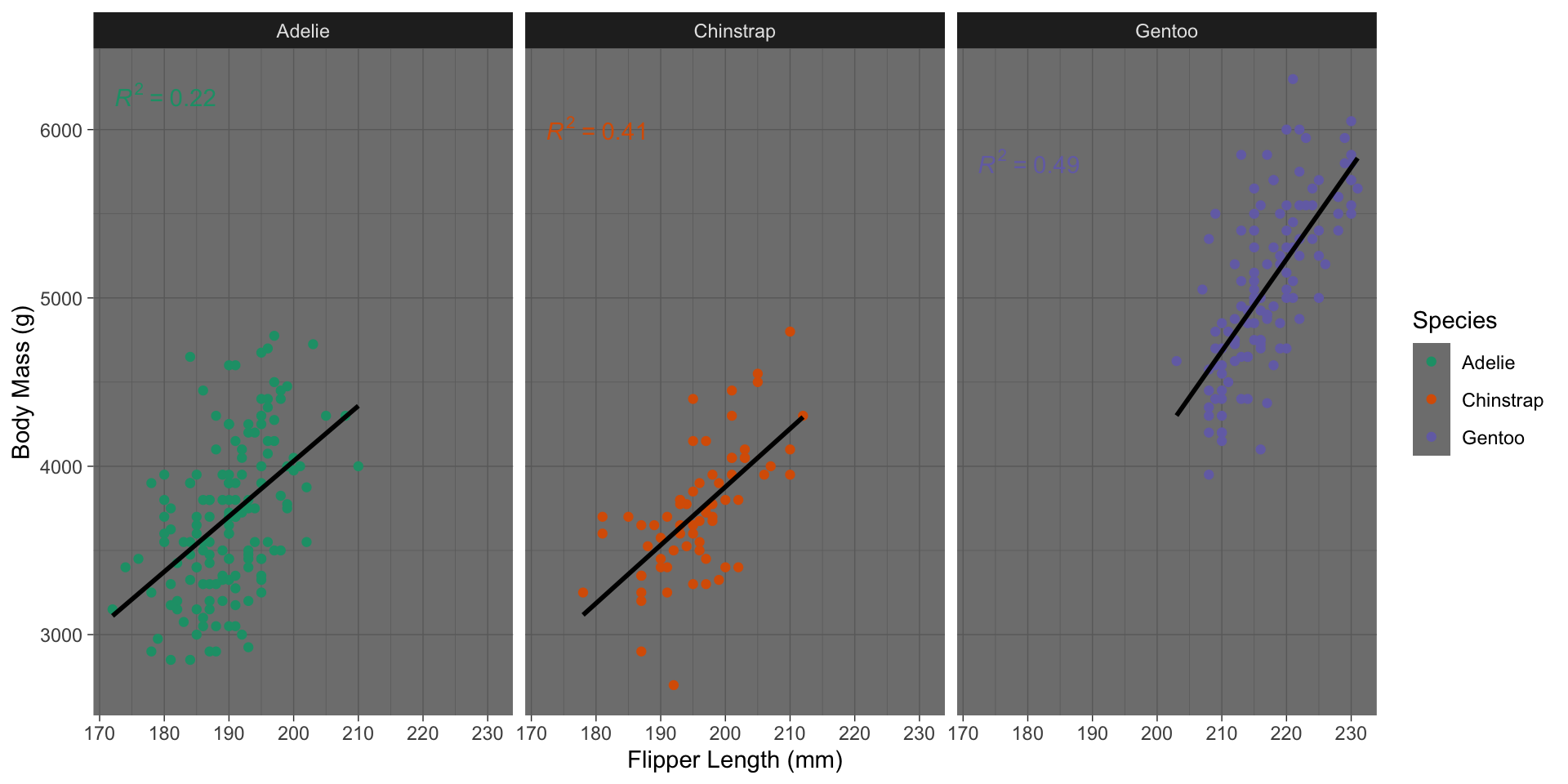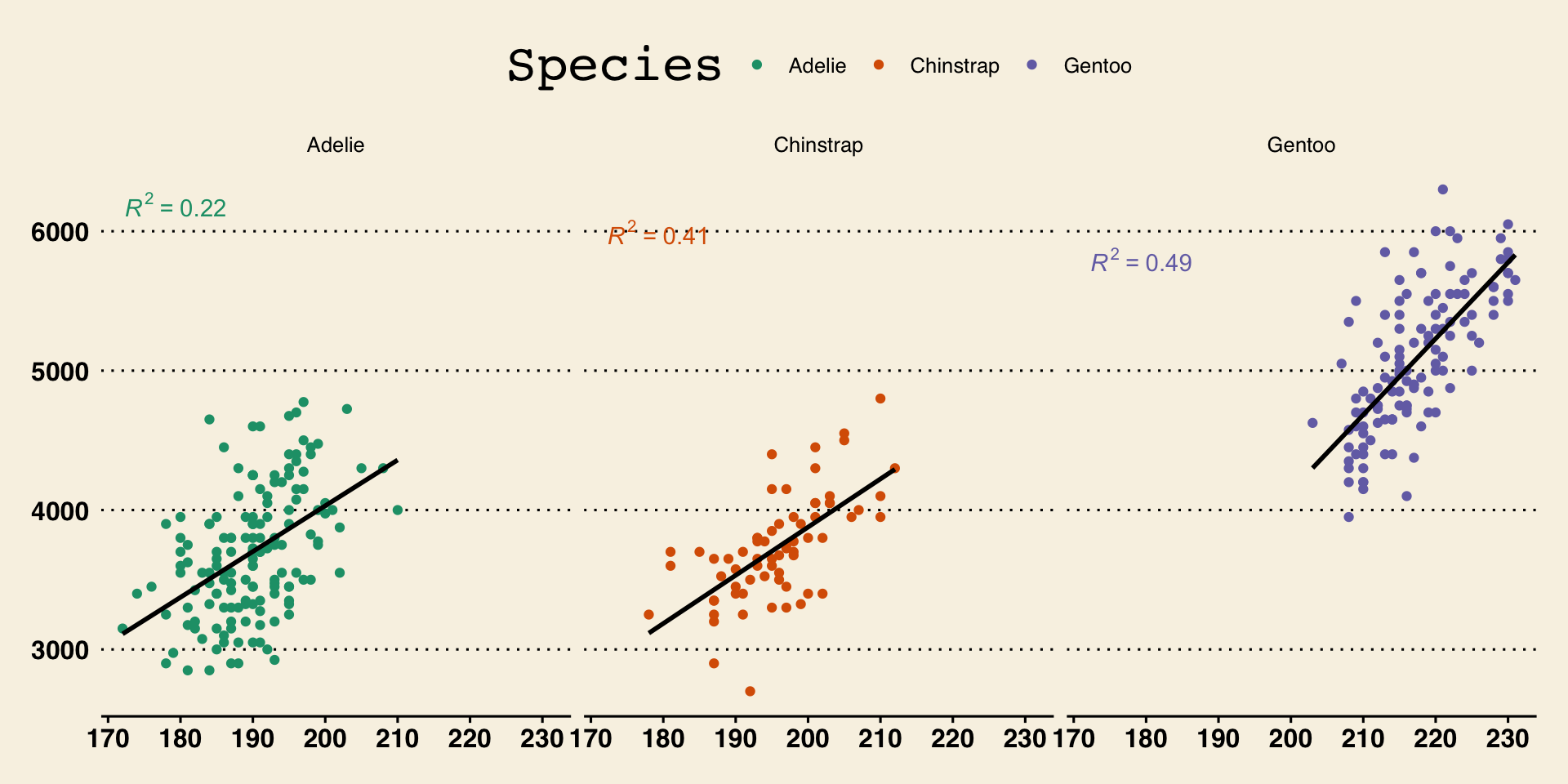library(palmerpenguins); library(ggpmisc)