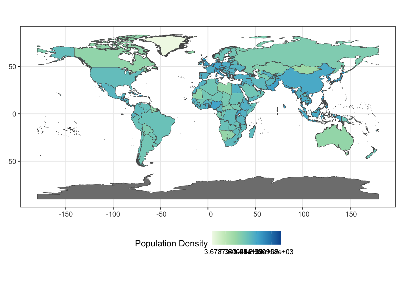 For this final warm-up exercise, you are going to use a combination of the skills learned over the semester to create a map of the countries of the world, colored by population density.