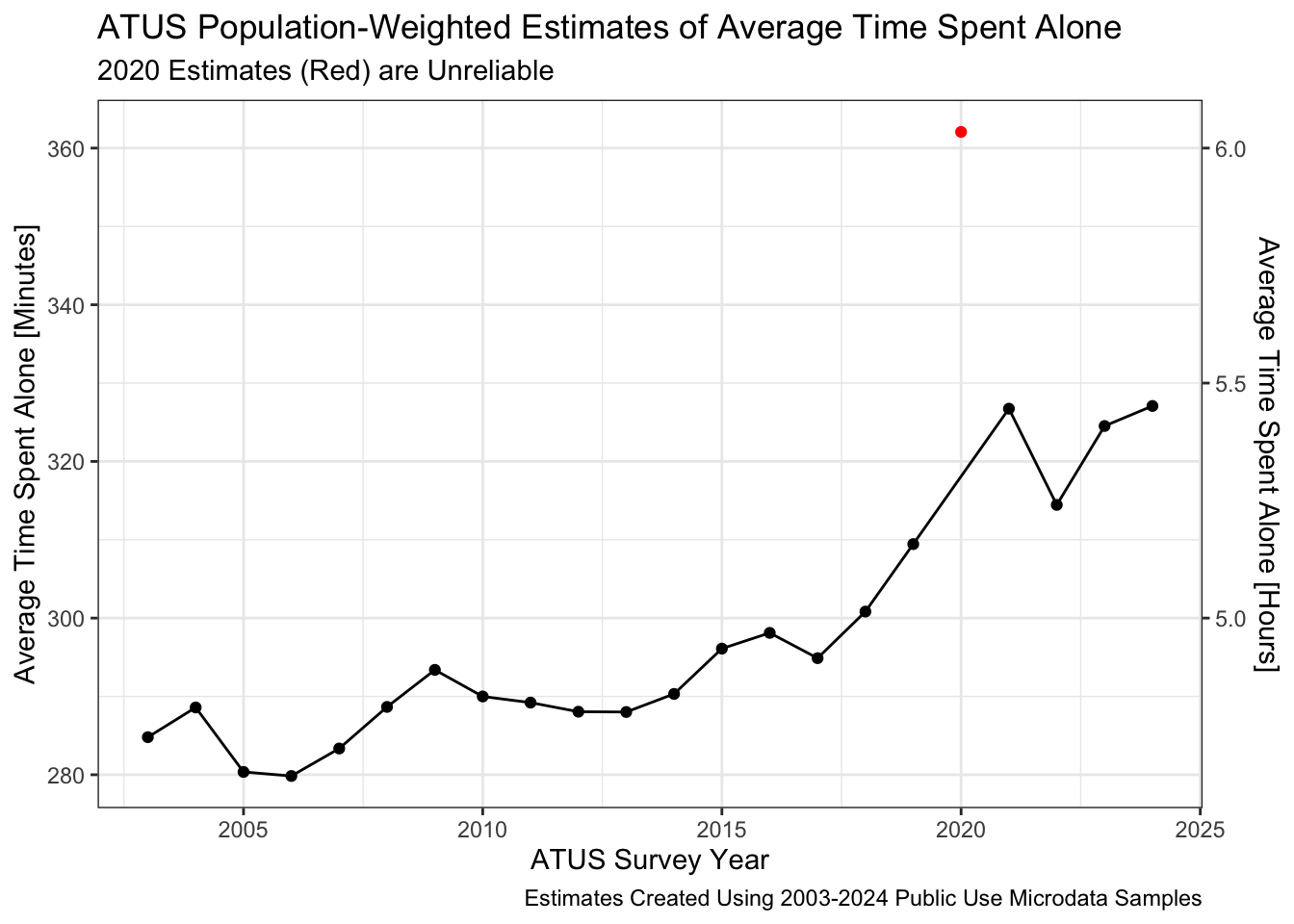 TU20FWGTfor 2020 data that also weights by date to ensure the “peak social isolation” period of March 18 - May 9 is represented. You can ignore this subtlety, but I’m flagging it here in case pandemic-effect questions are of interest.↩︎If you don’t want to reveal your actual time use patterns or if your Target Demographic 3 is a group to which you don’t belong, feel free to use made-up values here. No one is actually monitoring how you spend your time outside of class.↩︎