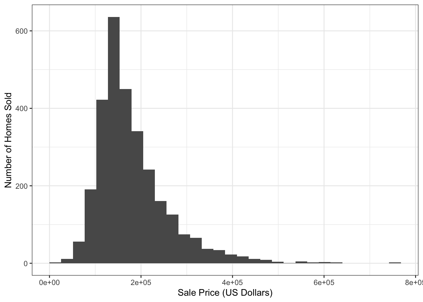 Here, we see that the glance function provides the usual ‘model-level’ statistics that can be used to assess how effective the model is. Perhaps the most important ones here are the r.squared value, indicating we capture about 60% of variability with this model, and the sigma value indicating that our predictions are typically off by about $50,000.
