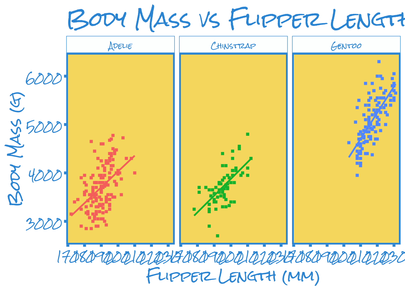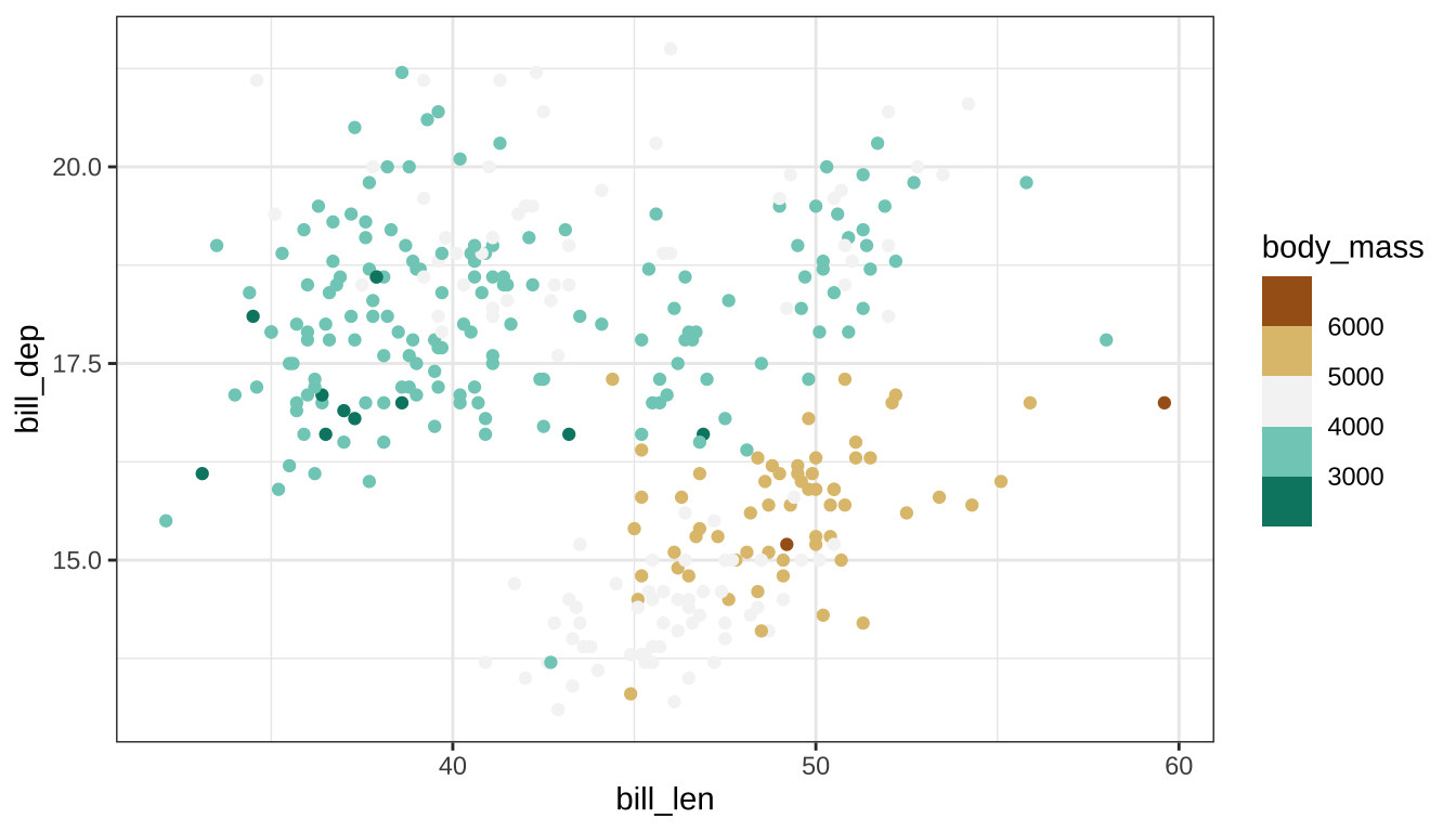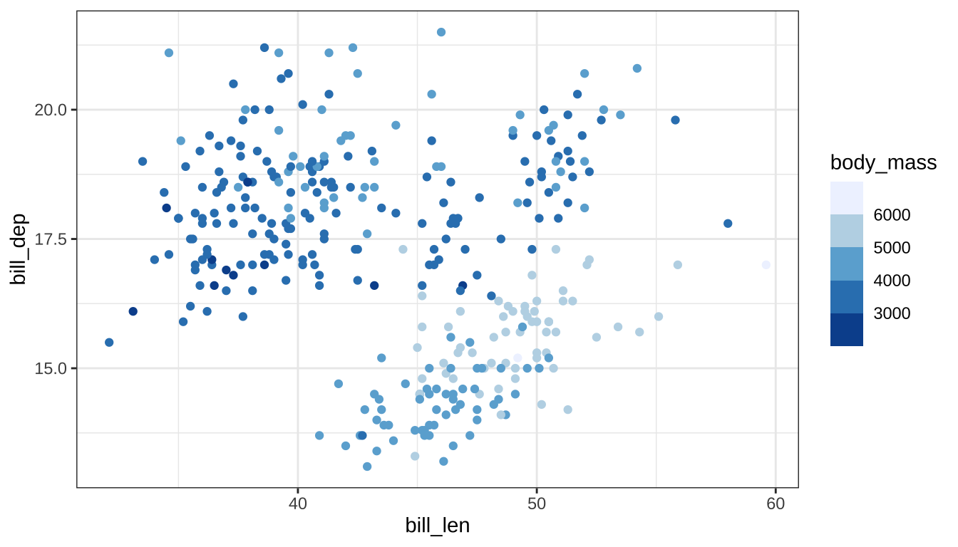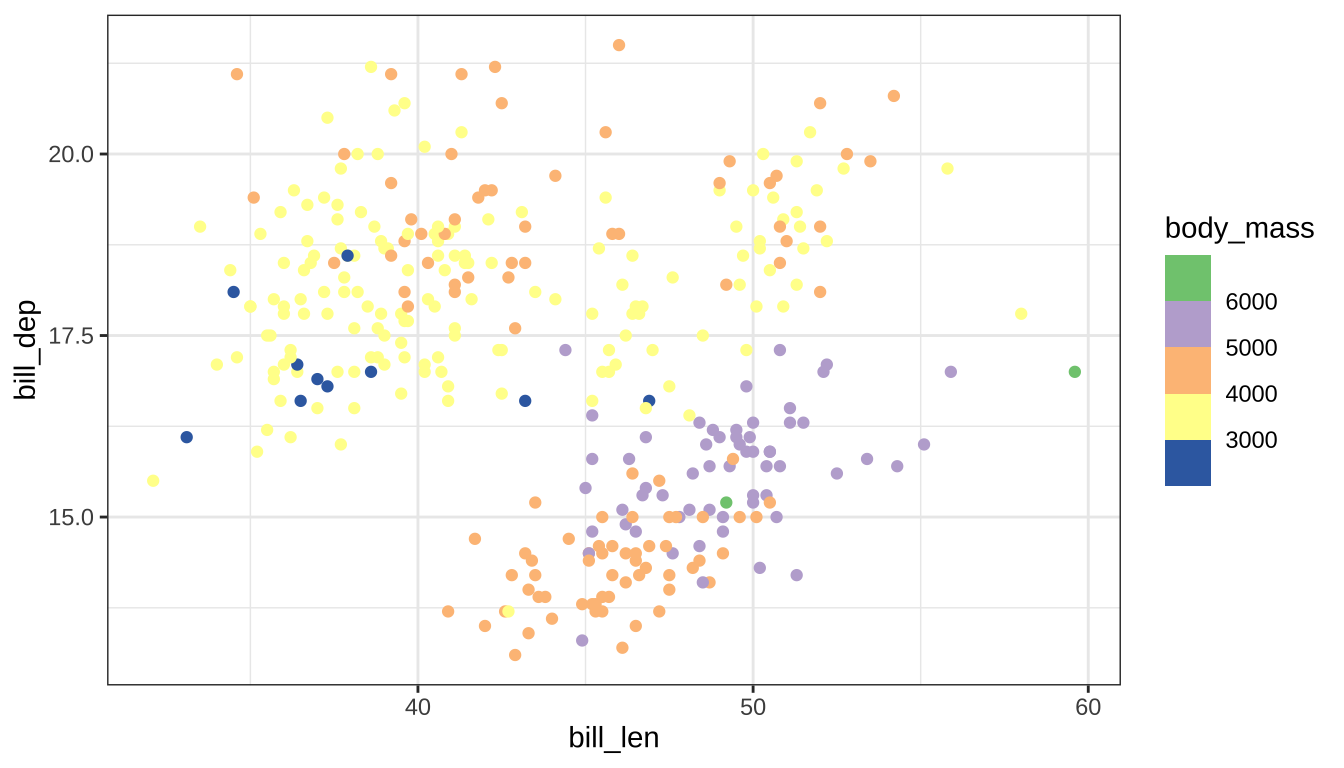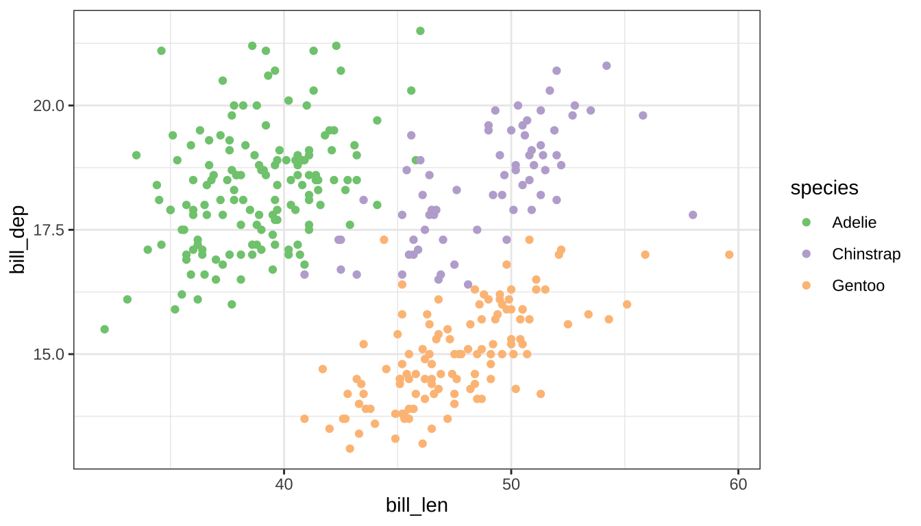 Let’s plot the penguins data. To avoid warnings, use a no-NA version: