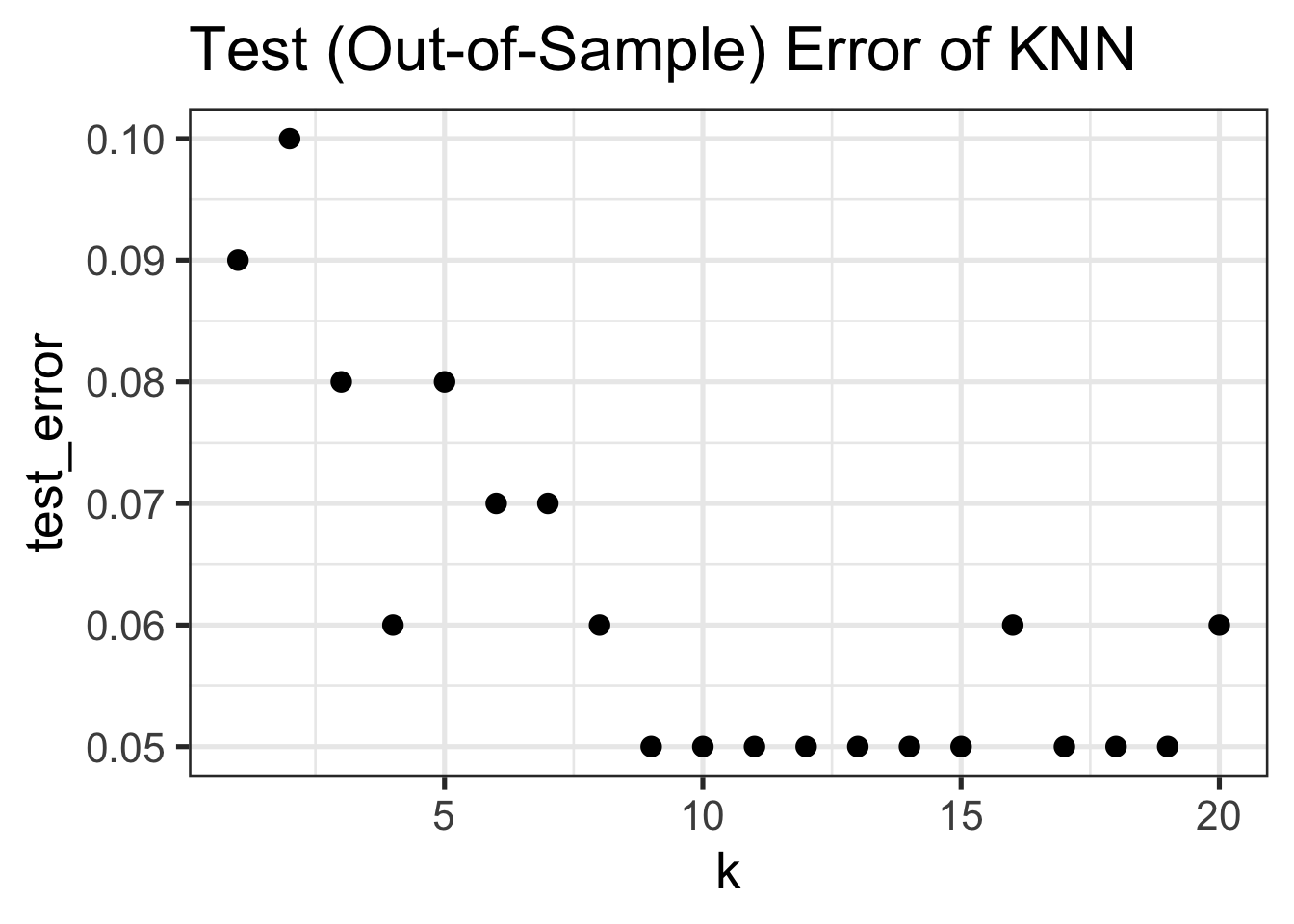 ggtitle("Test (Out-of-Sample) Error of KNN")