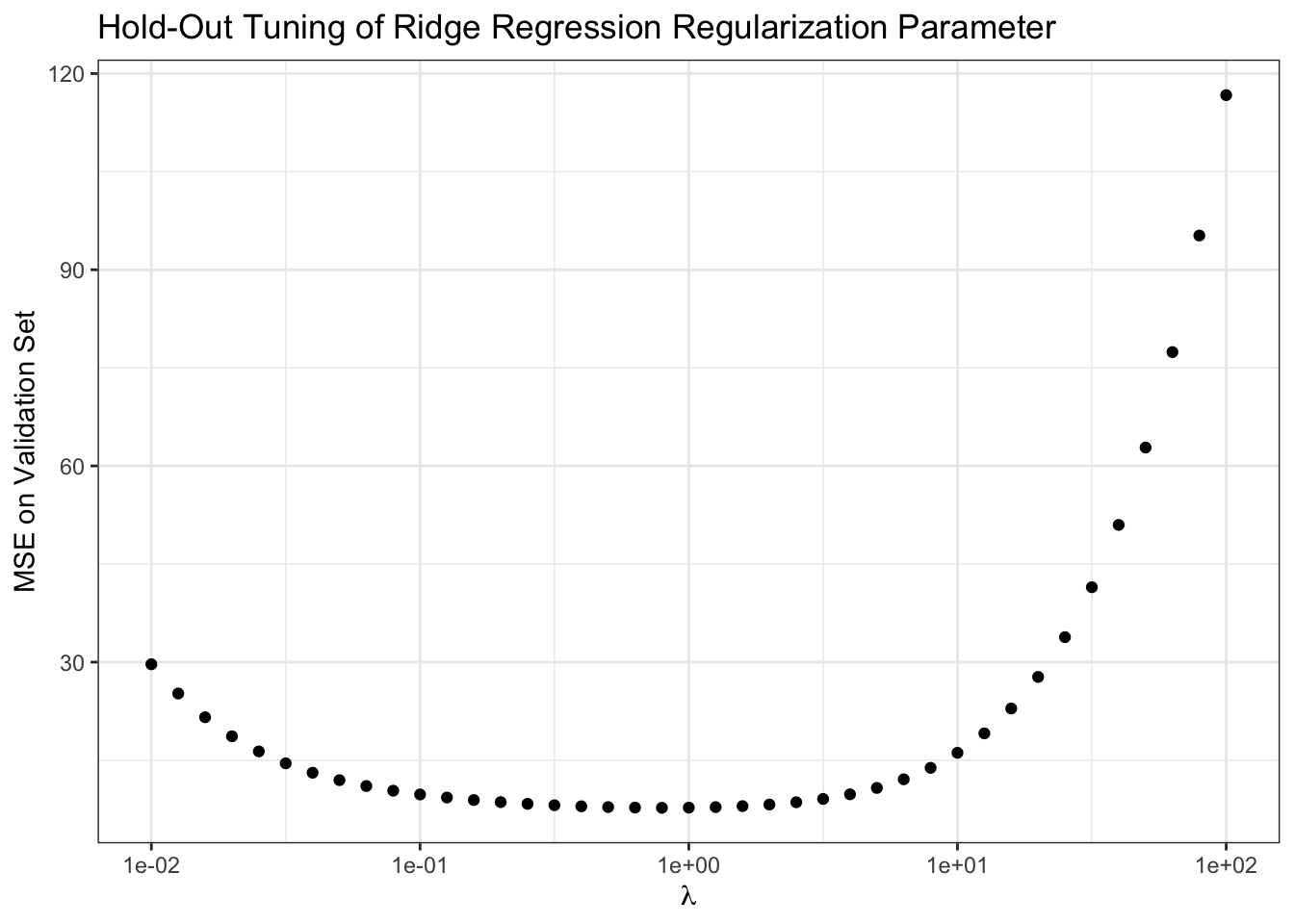 ggtitle("Hold-Out Tuning of Ridge Regression Regularization Parameter") +