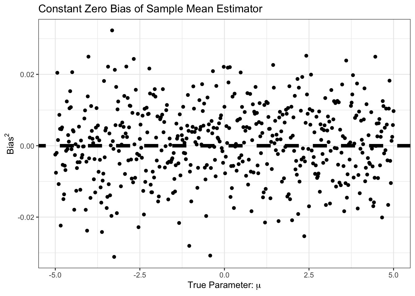 ggtitle("Constant Zero Bias of Sample Mean Estimator") +