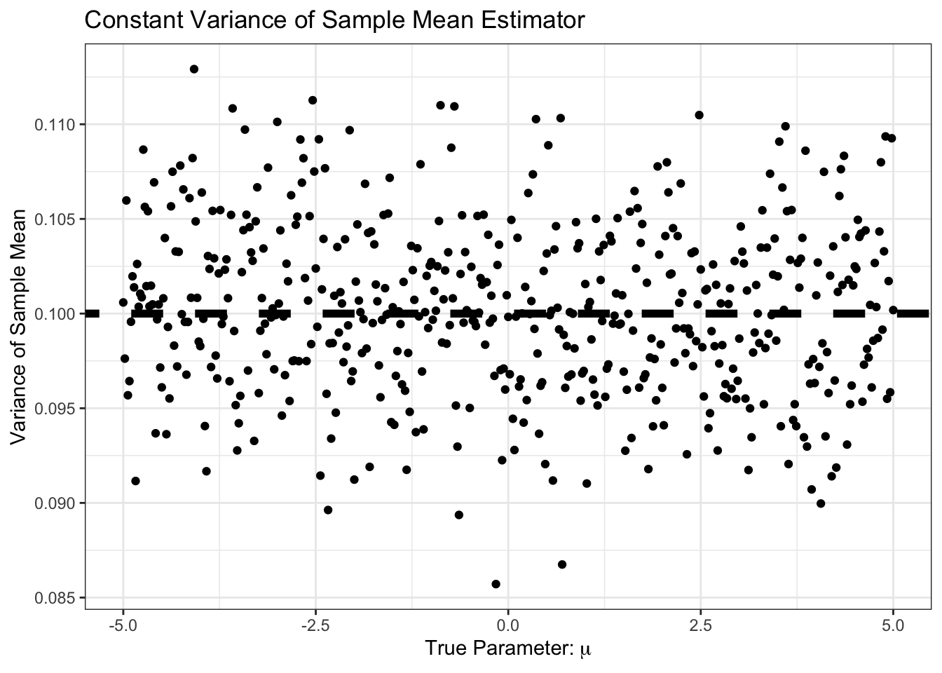 ggtitle("Constant Variance of Sample Mean Estimator") +