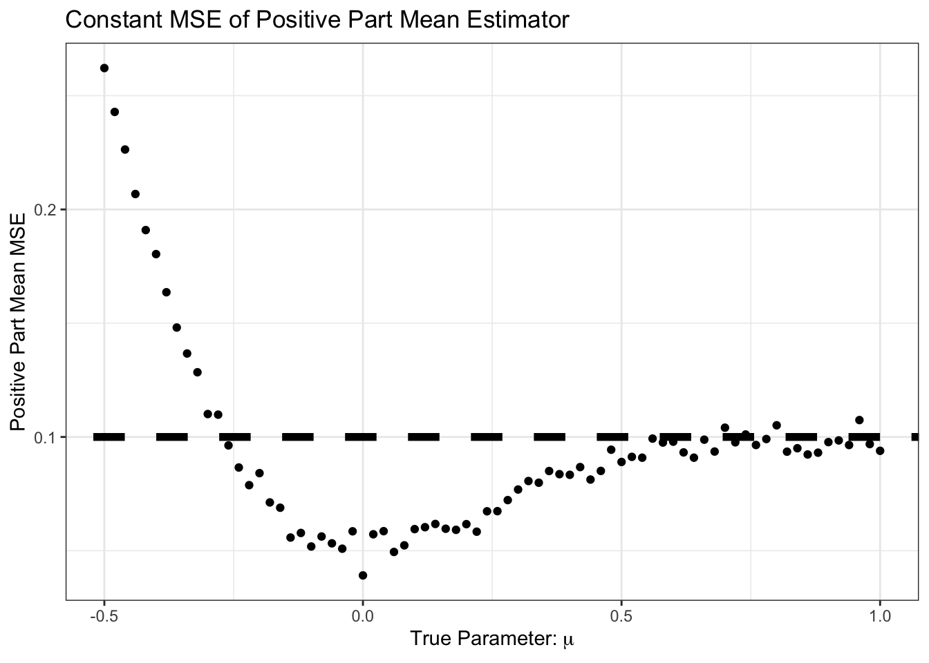 ggtitle("Constant MSE of Positive Part Mean Estimator") +