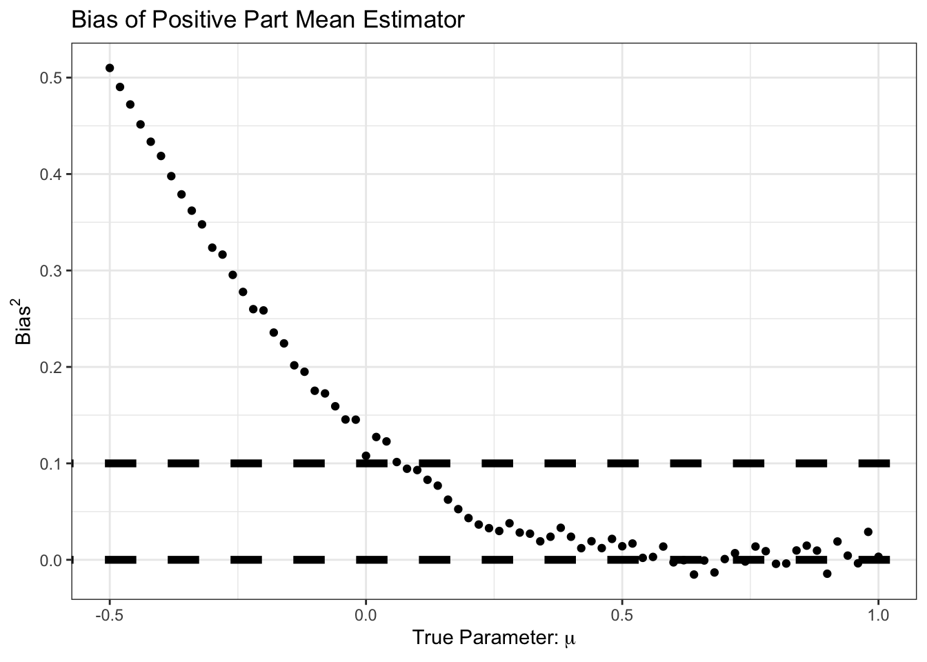 ggtitle("Bias of Positive Part Mean Estimator") +