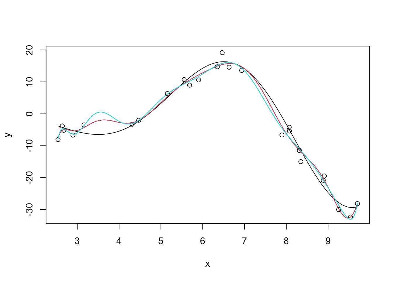 m <- gam(y ~ s(x))