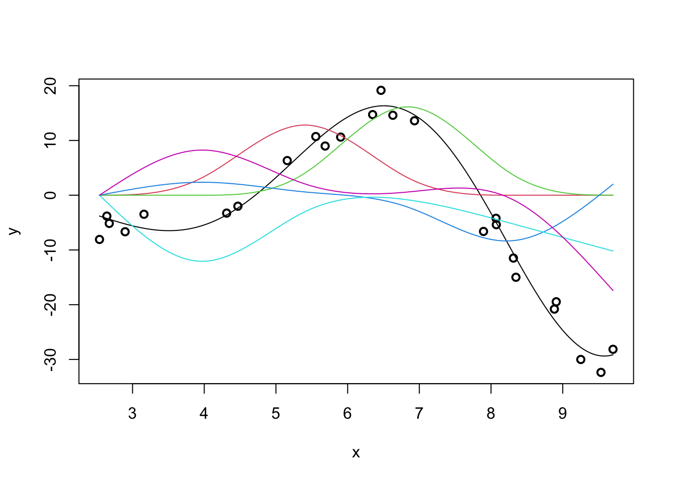 In the non-linear context, the ‘estimation bias / variance’ trade-off remains, but modern tools like mgcv essentially handle this automatically for us. It is of course still there, but mgcv has some nifty auto-tuning built-in.5